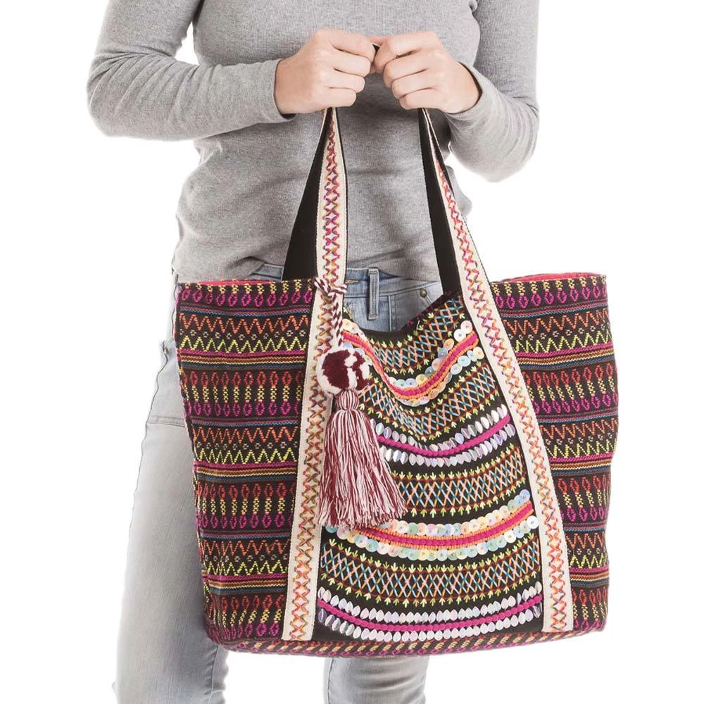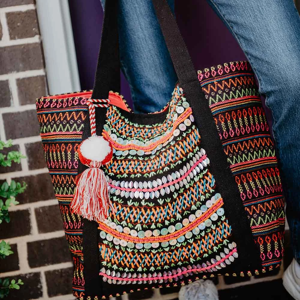 Katydid Black/Multicolored Aztec Embroidered Tote Bag Fall & Winter