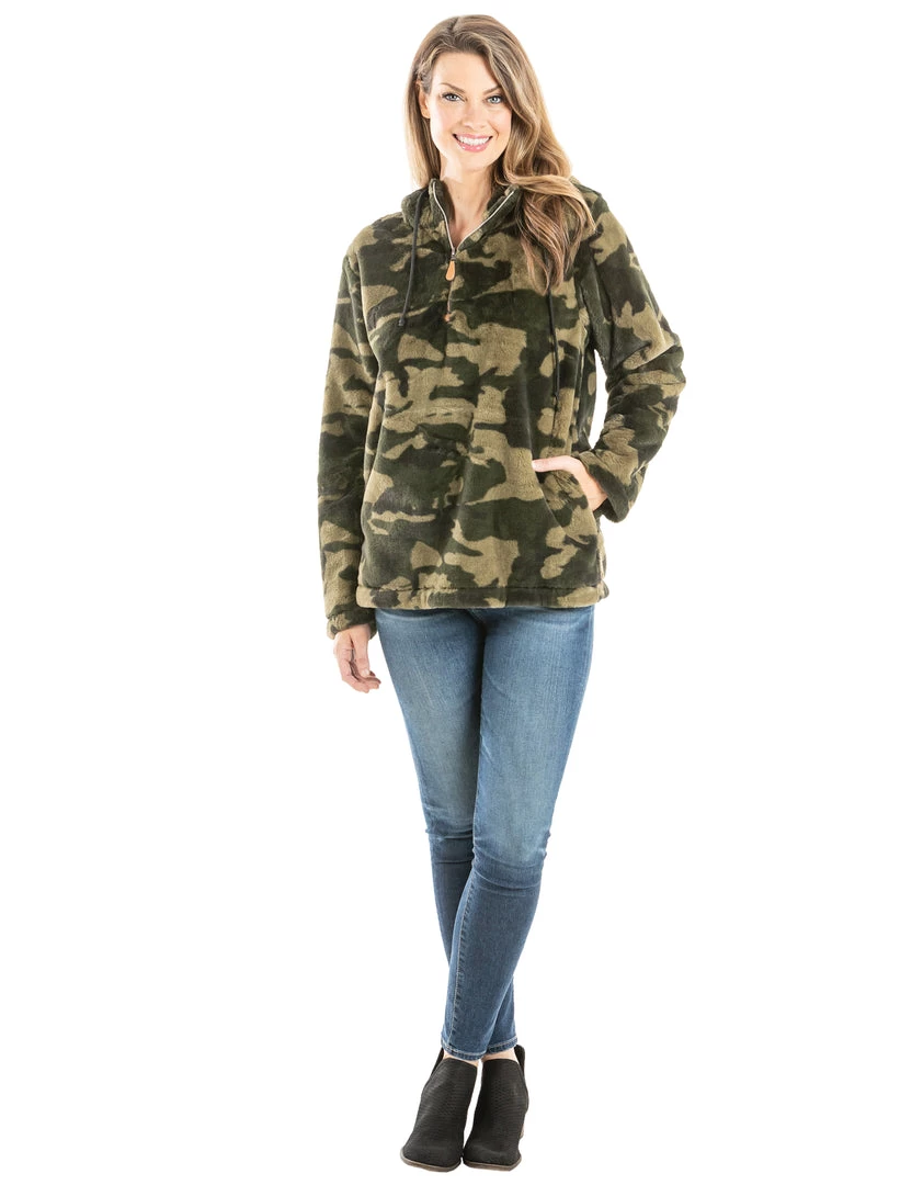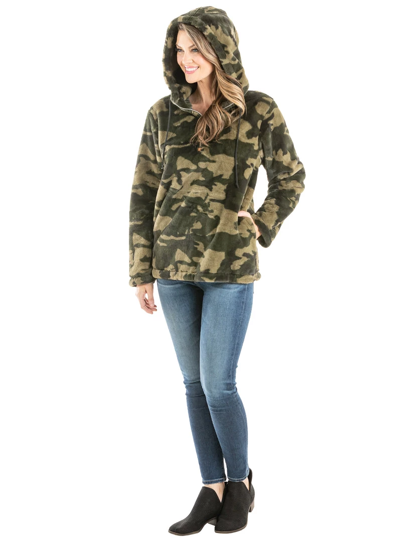 Katydid Camo Faux Fur Fleece Pullover With Hoodie Fall & Winter