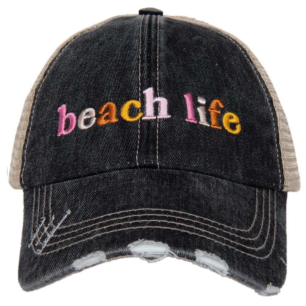 Life is a beach. Soak it all in! A cute and comfy trucker hat for sunny summer days, this cool beach life hat comes adorned with colorful embroidery and distressed details.