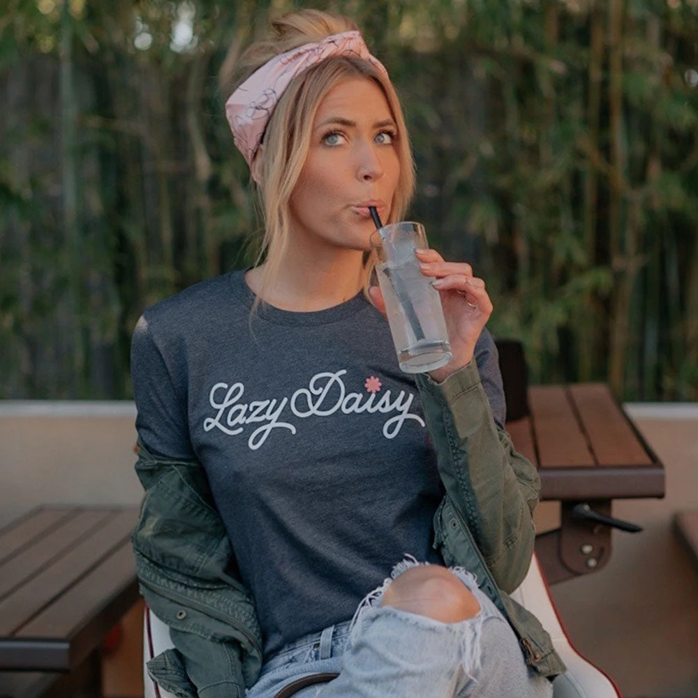 Go, go flower power! A rendition of the iconic lazy daisy stitch, the floral script logo applied to this cute graphic tee makes it a cool pick for laid-back occasions.