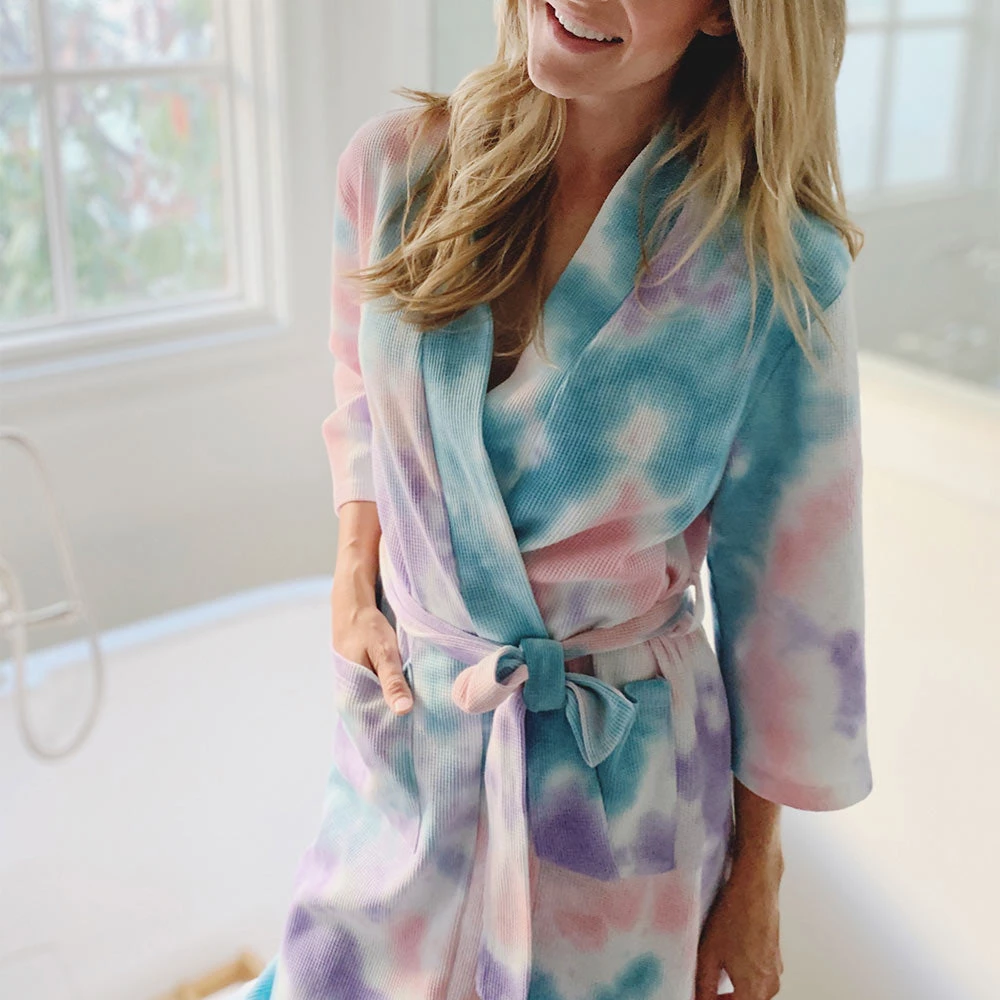 - Tie dye 3/4 sleeve robe